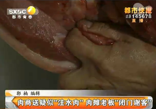 肉商送疑似“注水肉” 肉攤老板“閉門謝客”陜西都市青春頻道報道,轄區(qū)內(nèi)肉商肉商送疑似“注水肉” 肉攤老板“閉門謝客”