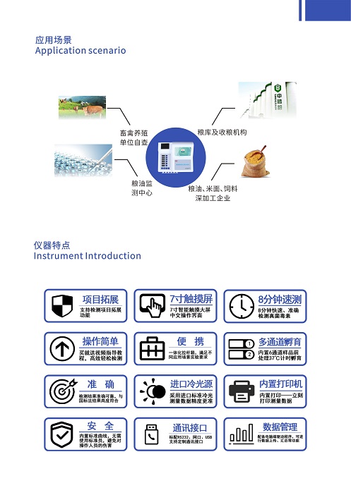 為了保障食品安全,日常監(jiān)管檢測食物中黃曲霉霉毒素是否超標(biāo)這一工作尤為重要和必要。深芬儀器CSY-YG701黃曲霉毒素快速測定儀通過檢測線熒光定量卡中的熒光強(qiáng)弱程度,定量分析待檢樣品中黃曲霉毒素B1殘留含量;能夠快速定量檢測花生、牛奶、玉米、小麥、大米、大麥、小米和燕麥等谷物、飼料、面粉、食用油、調(diào)味品中黃曲霉毒素B1,適用于糧庫收糧檢測、糧油監(jiān)測中心、糧油飼料生產(chǎn)加工、食品加工貿(mào)易、畜禽養(yǎng)殖戶自查、工商質(zhì)監(jiān)部門用于市場快速篩查等。