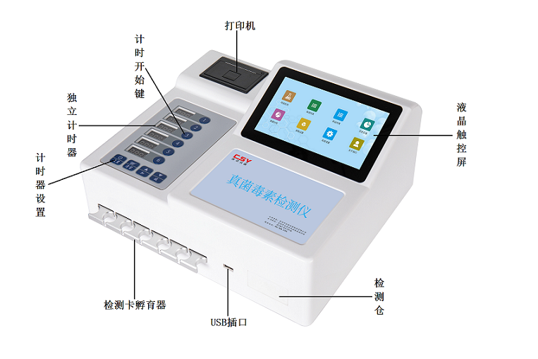 深圳市芬析儀器制造有限公司(深芬儀器)CSY-YG701黃曲霉毒素測定儀通過檢測線熒光定量卡中的熒光強弱程度,定量分析待檢樣品中黃曲霉毒素B1殘留含量;能夠快速定量檢測玉米、小麥、大米、大麥、小米和燕麥等谷物、飼料、面粉、食用油、調(diào)味品中黃曲霉毒素B1,黃曲霉毒素測定儀適用于糧庫收糧檢測、糧油監(jiān)測中心、糧油飼料生產(chǎn)加工、食品加工貿(mào)易、畜禽養(yǎng)殖戶自查、質(zhì)監(jiān)部門用于市場快速篩查等。